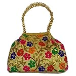 DMS RETAIL Women’s Embroidered Silk Potli Bag with Pearl Beads Drawstring – Multicolor