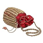 he extravagant style of Gujarat comes to life through rich colors, lavish embroidery and sequins that emulate the region’s traditional appliqué. Designed with the heart, this beautiful Potli – batawa bag with eye catchy Beadwork.It has a braid string on the top for ease to carry.
