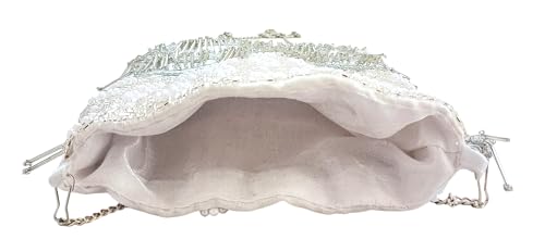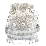 DUCHESS Silver Pearl Embellished Beaded Tassel Potli Bag For Weddings (Silver)