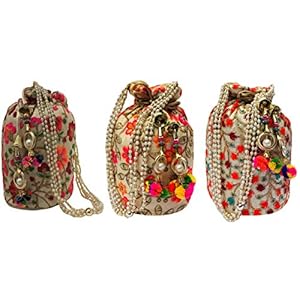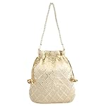 DUCHESS Women’s Gota Patti Golden Potli Bag Purse with Pearl Handle (Pack of 2)
