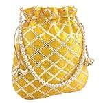 DUCHESS Women’s Gota Patti Lemon Potli Bag Purse with Pearl Handle (Pack of 10)