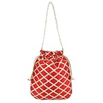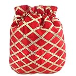 DUCHESS Women’s Gota Patti Red Potli Bag Purse with Pearl Handle (Pack of 10)
