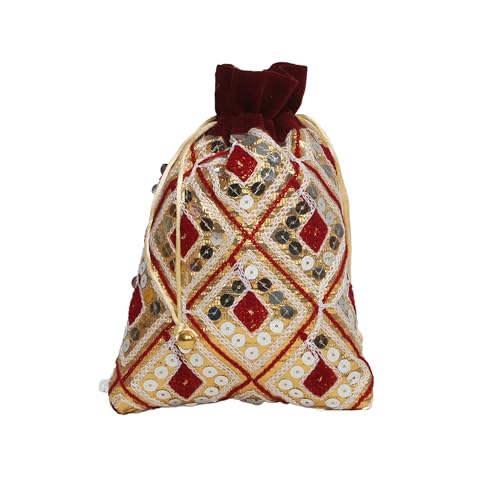 Dulhan DLC set of 50 Shimmer & Velvet Potli Bags with Heavy Work for Wedding Return Gifts, FANCY pouch potli, Bridal Handbag for Women