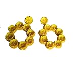 These Elegant yellow Flower Hoop Earrings are the perfect accessory for a Haldi ceremony in an Indian wedding. Crafted with intricate floral detailing, these earrings feature a series of beautiful yellow-tone flowers arranged in a hoop shape. Measuring 6.5 cm in height and 4.5 cm in width, and weighing 25 grams, they offer a bold yet graceful look. The high-quality materials and exquisite craftsmanship make these earrings a standout piece. Their vibrant gold finish adds a touch of traditional elegance, making them an ideal choice for brides and guests alike. Elevate your Haldi ceremony outfit with these stunning earrings that embody both beauty and tradition.