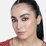 This Ethnic Maang Tikka would look elegant and goes well with any traditional outfit. Since it has been made from premium pearls and cubic zirconium with a coating of gold plating. This Maang Tikka has a luxurious appearance and can be worn in special occasions like weddings, Festivals etc.,