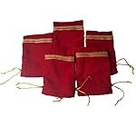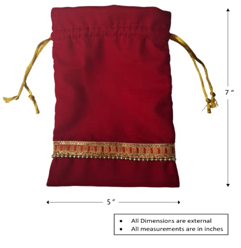 Fabjute Red Velvet Potli Bag for Return Gifts (Pack of 5) (Velvet-Red, 7×5)