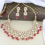Fashion Women Gold Plated Traditional Kundan Studded Bridal Choker Necklace And Drop Earrings Jewellery Set For Women/Girls (K78) Colour Red