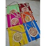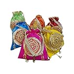 Gifting Bells Gotapatti Big Size Potlis with Chain Handle Potli Velvet with Gota Patti Potli Purse Women Handbag Handicrafts Handmade Decorative Pure Silk Jaipuri Resh Potlis
