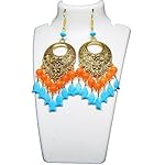 Elevate your ethnic ensemble with these exquisite Orange & Blue Glass Beaded Chandbali Earrings. Handcrafted by skilled artisans, these earrings boast intricate glasswork and vibrant hues that seamlessly blend traditional Indian aesthetics with contemporary flair. The lightweight yet sturdy construction ensures comfortable all-day wear, making them perfect for festive occasions, weddings, or even casual outings. Measuring approximately 7 cm (2.8 inches) in length, these chandbali earrings feature a captivating blend of orange and blue glass beads meticulously arranged in an intricate pattern. The delicate beadwork and dangling design add a touch of elegance and movement to your overall look. Whether you’re adorning a saree, lehenga, or ethnic kurta, these earrings will undoubtedly elevate your ensemble and make you the cynosure of all eyes. Embrace the rich cultural heritage and add a touch of glamour to your ethnic wardrobe with these stunning Orange & Blue Glass Beaded Chandbali Earrings.