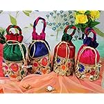 GoldGiftIdeas Silk Embroidered Potli Bags for Women, Potli Pouches for Party, Potli Bags for Return Gifts, Elegant Potli Bags for Ladies (Set of 4)