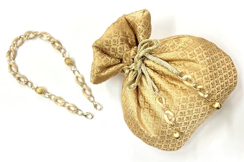 Heddz Handcrafted Raw Silk Drawstring Potli Bag for Ladies with Detachable Glass Beads Chain Handles & Tassels for Parties, Weddings and Special Ocassions