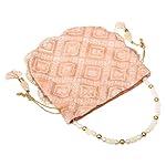 Homestic Potli | Silk Fabric Zig Zag Embroidery Potli | Heavy Zari Work Potli | Traditional Indian Beads Drawstring Bags for Wedding | Shagun | Peach