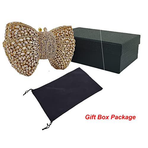 HUANG ZHUANG Bowknot Luxury Crystal Clutch Women Glitter Rhinestone Evening Bag for Party Wedding