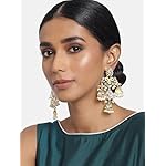 I Jewels 18k Gold Plated Kundan Pearl Studded Jhumki Dangle Earrings for Women (E2946)