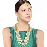 I Jewels 18K Gold Plated Traditional 5 Layers Kundan & Pearl Beaded Moti Raani Haar Necklace Jewellery Set For Women (ML164)