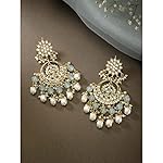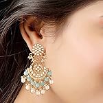 I Jewels Gold Plated Traditional Handcrafted Kundan & Pearl Chandbali Earrings for Women