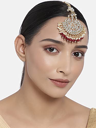 I Jewels 18K Gold Plated Traditional Kundan & Stone Studded Maang Tikka for Women & Girls (T2042)