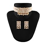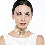 I Jewels 18K Gold Plated Traditional Kundan Studded Pearl Choker Necklace Jewellery Set for Women (ML236)