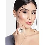 I Jewels 18k Gold Plated Traditional White Kundan & Pearl Studded Adjustable Finger Ring for Women (FL205)