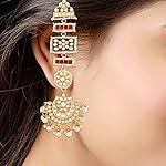 I Jewels 18K Gold Plated Zinc Alloy Matte Finish Kundan and Pearl Work Chandbali Earrings for Women