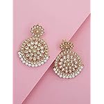 I Jewels Gold Plated Traditional Kundan Pearl Chandbali Earrings For Women And Girls (E2462)