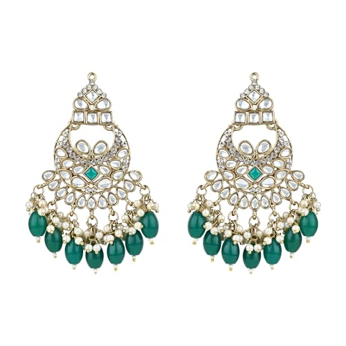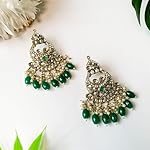 I Jewels Gold Plated Traditional Kundan Pearl Chandbali Earrings For Women/Girls