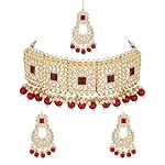 I Jewels Gold Plated Traditional Kundan Pearl Choker Necklace Jewellery Set With Earrings & Maang Tikka For Women (K7286M)