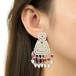 This Earring set is crafted in gold plated finish with stunning antique finish – these earrings are really special .The Earrings feature Kundan-studded. Be stylish and smart with these Golden Earring. Perfectly crafted. Wear it with a suit or a saree, and lehenga for an ethnic yet classy look. This earring set is a great option and a perfect pick for your wedding functions. Be assured to find a variety of contemporary and traditional designs in the mesmerising collection that we offer