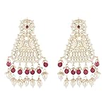 I Jewels Gold Plated Traditional Kundan & Pearl Drop Dangle Earrings For Women