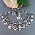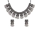 I Jewels Navratri Oxidised Silver Plated Afghani Choker Necklace Jewellery Set for Women (MC070)