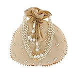 Imicreate Ethnic Clutch Silk Potli Batwa Pouch Bag with Beadwork Gift for Women