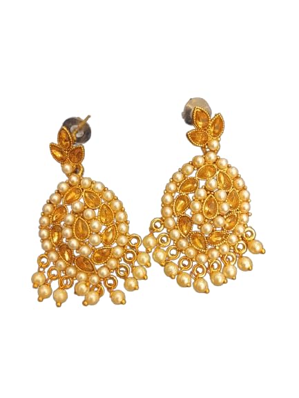 Elevate your ethnic ensemble with these exquisite gold plated punjab earrings. Crafted with meticulous attention to detail, these dangle earrings exude an aura of timeless elegance and cultural heritage. The intricate designs, inspired by the rich traditions of Punjab, are a testament to the skilled artisanry that goes into their creation. Whether you’re adorning yourself for a festive occasion or seeking to add a touch of ethnic charm to your everyday look, these earrings will undoubtedly captivate all who behold them. Lightweight and comfortable to wear, they are the perfect accessory to complement your traditional attire or to infuse a hint of cultural flair into your contemporary ensemble. Embrace the beauty of Indian craftsmanship and let these gold plated punjab earrings elevate your style to new heights.