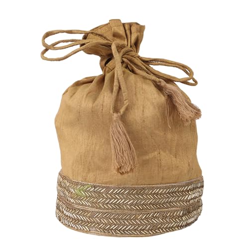 This “authentically Indian” Potli bag has a beautiful handcrafted lace beads and is made from premium Dupion silk.Potli bags are known to have been a part of Indian culture since Vedic times. After a journey of over centuries, these bags are now a trendy and must-have accessory for women and girls all over the globe.Beautiful Potlis add to charm when a lady goes for wedding party. Our handmade designer Potli can be used for various purposes such as return gifts, wedding favors, Diwali hamper fillers, and more. You can also use it to carry essential items like your mobile and money to fancy occasions like a marriage reception or any other formal event. It is easy to use and maintain, and can be filled with a variety of items, such as sweets, chocolates, or other small gifts. Behind the making of this bag is the artisanship of around four underprivileged women, helping them sustain themselves and their families, which also brings the world closer to meeting Goals 5 and 8 of the Sustainable Development Goals (SDG) 2030 that promote women empowerment, sustainable economic growth, productive employment and decent work for all.