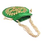 This beautiful Potli or batwa bag having eye catchy premium embroidery row Silk material. It has a braid string on the top for ease to carry. You can easily carry big mobile phone, valuables items, cosmetics, etc. as this potli having spacious compartment. This Potli bag having beautiful handle, made with high quality pearls which look awesome and easy to carry. It has a braid string on the top with beautiful tassels. Perfect Giveaways! Ideal for Wedding Gifts, Festive Gift, Valentine Gifts or any other occasions. To be use in casual routine wear as well as in party, wedding, etc. Please note that as all clutch, purse, potlis, etc. are handcrafted. Hence, slight variation in design, color, work pattern and shape may not be considered as defect.
