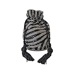 Indian Potli Bag, Beaded Zebra Bag, Standing Drawstring Purse, Mini Bucket Bag, Evening Bag with Wristlet and Tassels