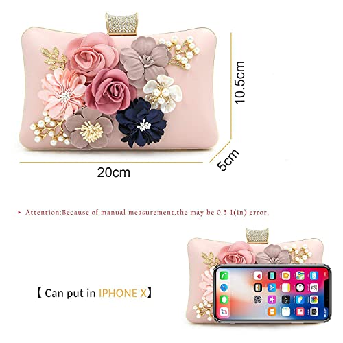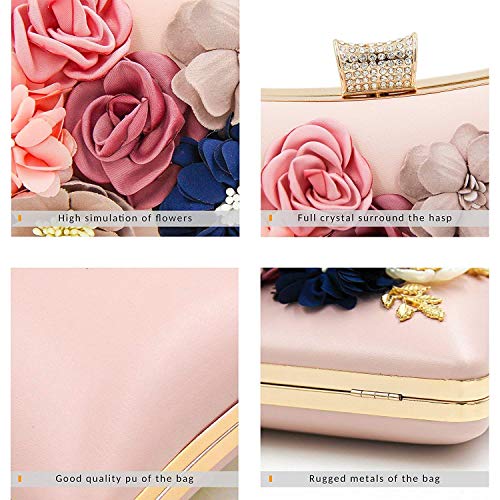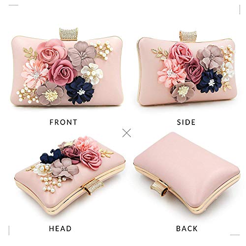 INOVERA (LABEL) Women’s Floral Evening Clutch Ladies Party Wedding Purse Bag (Rose Gold)