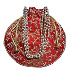This Fabric potli bag combo is perfect for ethnic dress and wedding fashion. This Potli bag also meets the purpose of return gift on wedding and other occasions. It is shiny in appearance. It has capacity of 400 gm. this potli material is Outer Embroidered & Inner Dupin Silk. this beautiful potli you can also use as return gift It’s a perfect accessory for your outfits. Match it with pair of heels/sandals ans suit and sarees to give complete look. (Pack Of 1 Potli bag) for women, handbags traditional Indian Wristlet with Drawstring Ethnic Embroidery Women Fashion Potli.this potli bag is great gift for (wife sister bhabhi girlfriend mother) wedding and party.this potli combo is made with silk cotton fabric with multi-layered beaded strong handle and this flower design potli make you gorgeous in all occasions. This potli handbags is made with genuine fabric.