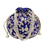 JSRS CREATIONS Blue handicrafts and jewellery Potli Wristlets Ethnic Potli For Women’s | Designer Rajasthani Style Royal Clutch velvet Batwa Bag | Zari Work Potli | Bridal Potli | Potli Bags