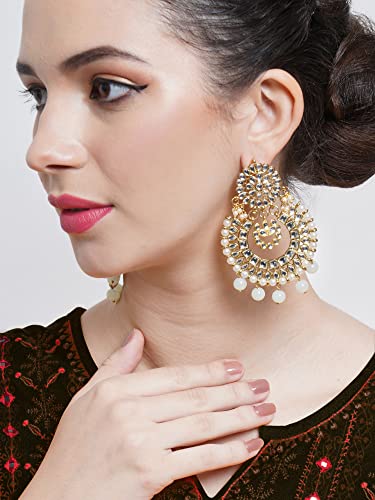 Karatcart Red Drops Kundan Chandbali Earrings for Women