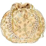 Kicha bag is made of high-quality polyester material with unique and attractive embroidery artwork. This potli is a good match with both Indian and western outfits and is superb for weddings and festive parties. This would be the best complement to your designer saree, lehenga, or any other kind of dress. This is the combination of traditional and modern embroidery work and this potli bag makes you glamorous and unique among your friends. This is enough to keep your accessories and all needed essentials and it can be the best gift for any woman.