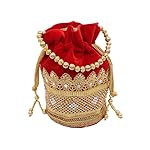Krishope Women’s Velvet Cross Gota Potli Batwa Bag for Shagun | Rajasthani Style Royal Velvet Potli Batwa Bag | Bridal Purse Women Handbag Shagun Pouch Return Gifts