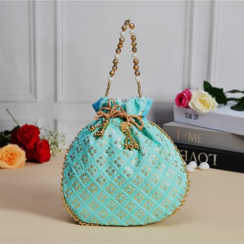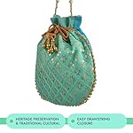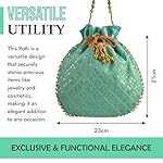 💛 EXCLUSIVE & FUNCTIONAL ELEGANCE : The Potli holds an exclusive that effortlessly combines style with practicality, Unique Potli stands out for its ability to blend elegance seamlessly with practical use, making it a standout choice for those who appreciate both style and usefulness in their accessories. Potli makes it perfect for storing jewelry, cosmetics, keeping them safe and organized. The intricate designs and graceful materials add a touch of sophistication to any outfit or occasion.