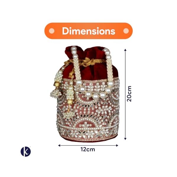 Kundhadiya Collections Pearl Potli Bags for Women | Potli Bags for Ladies | Potli Bags for Ladies for Wedding (Maroon)