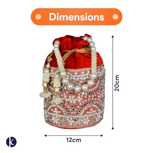 Kundhadiya Collections Pearl Potli Bags for Women | Potli Bags for Ladies | Potli Bags for Ladies for Wedding (Red)