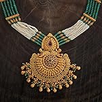 Kushal’s Fashion Jewellery Ruby-Green Gold Plated Ethnic Antique Necklace Set – 413107