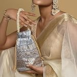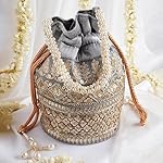 LAXMI ENTERPRISE Special Product Raw-Silk Designer Potli Bag for women with Golden Embroidery and Pearl Handle Tassel