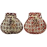 Lookingfab Presents Women’s Rajasthani Style Silk Potli Velvet with Gota Patti Purse Handbag (Red, Maroon)