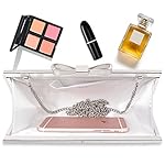 The glamorous evening clutch features allover sparkling crystals and bow metal frame.