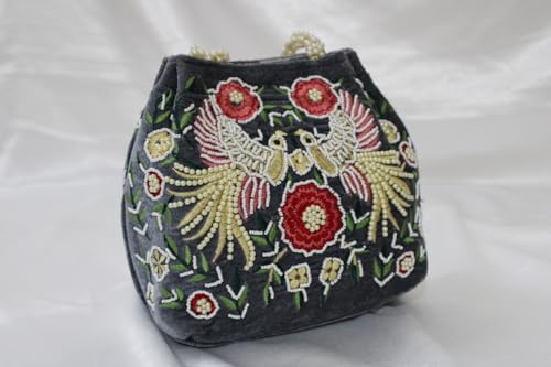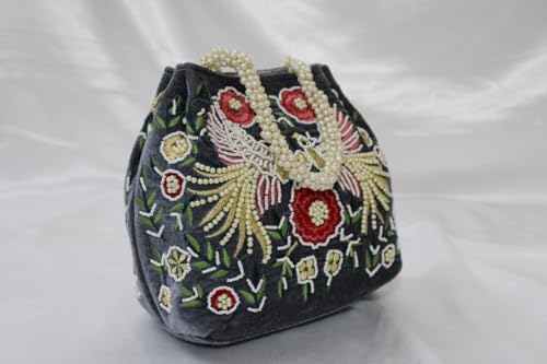 M R RETAIL ENTERPRISES Ashes Grey Silk Velvet Handbag | Handicrafts Handmade Decorative Pure Silk Hand Purse For Women’s