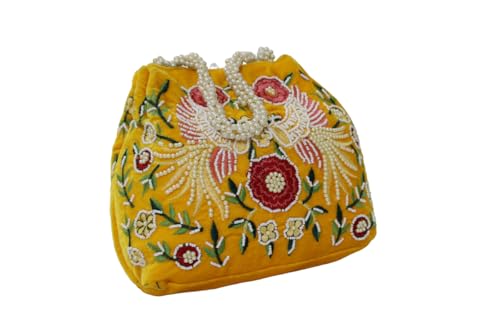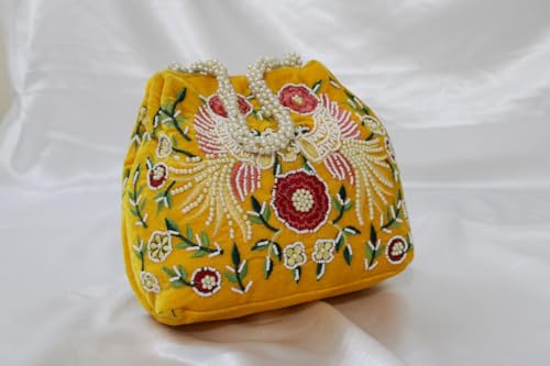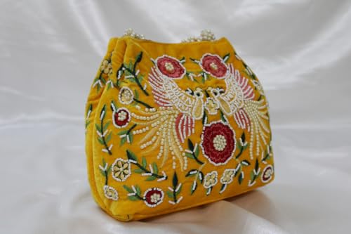 M R RETAIL ENTERPRISES Honeycomb Yellow Silk Velvet Handbag | Handicrafts Handmade Decorative Pure Silk Hand Purse For Women’s